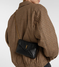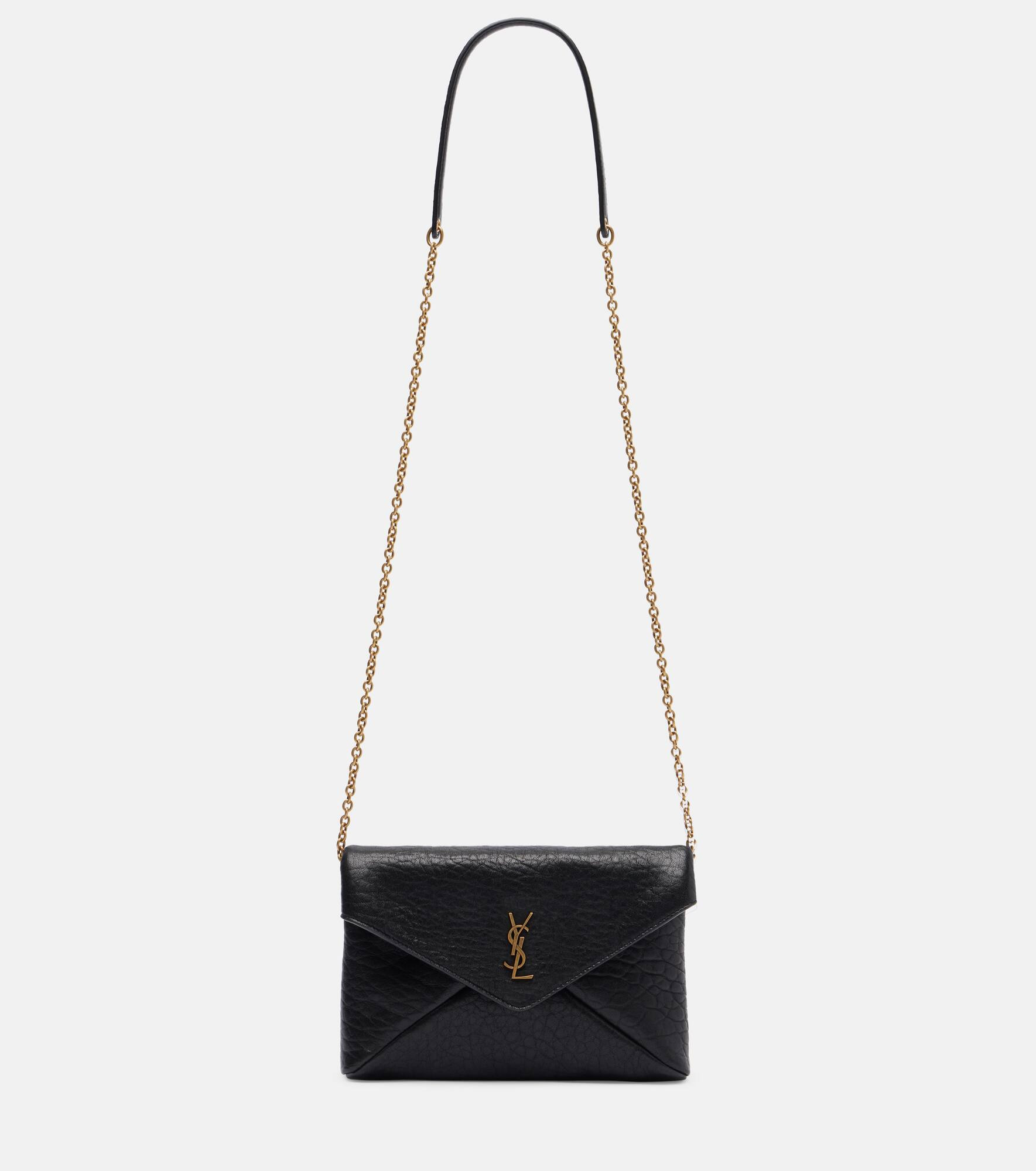One of the most famous symbols in fashion, the YSL monogram consists of the intertwined initials of Saint Laurent's founder. Featuring the iconic detailing, the Cassandre shoulder bag is expertly crafted from lambskin leather and can be worn on the shoulder or in the hand. Product Details - Material: lamb leather - Lining: leather - Made in Italy - Designer color name: Nero - Item color: black - Hardware color: bronze - Internal details: card slot, single compartment - Chain and leather shoulder strap - Closure: magnetic fastening - Includes: dust bag, box - Item number: P01100572 Size & Fit - Height 12,5cm-5" - Width 18,5cm-7.5" - Depth 3,5cm-1.5" - Chain length 101cm-40"