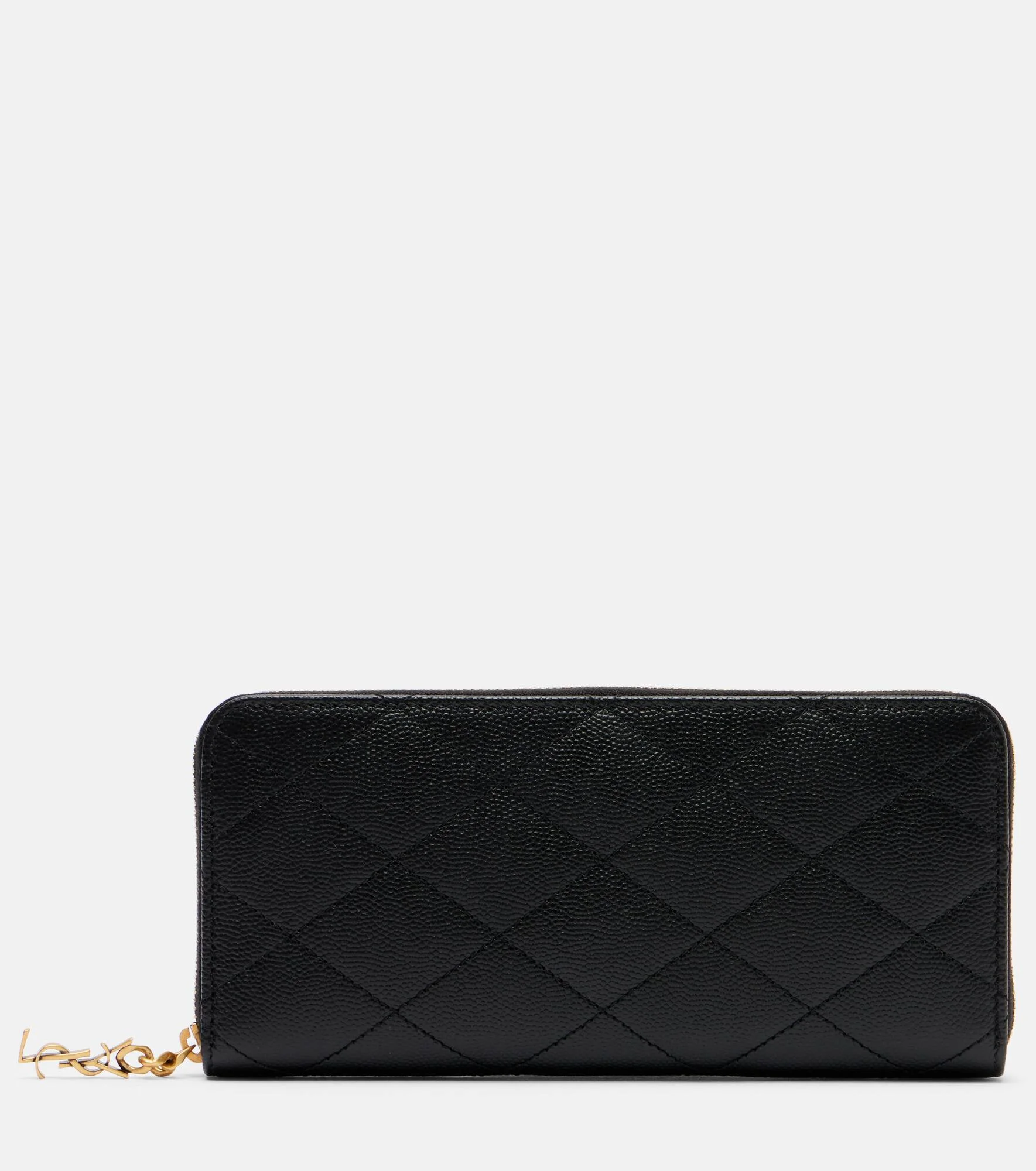 One of the most famous symbols in fashion, the YSL monogram consists of the intertwined initials of Saint Laurent's founder. Featuring the iconic motif, this wallet is crafted from lambskin leather and is complete with card slots and a zipped centre compartment. Product Details - Material: lamb leather - Lining: lamb leather - Made in Italy - Color: black - Designer color name: Noir - Hardware color: gold - Closure: zipped top - Internal details: zipped centre compartment, Card slots - Includes: box, dust bag - Item number: P01133828 Size & Fit - Height 9cm-3.5" - Width 19cm-7.5" - Depth 2cm-1"