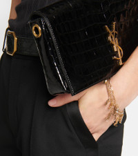 One of the most famous symbols in fashion, the YSL monogram consists of the intertwined initials of Saint Laurent's founder. This Cassandre charm bracelet cascades over four rows and secures with a toggled clasp closure. Product Details - Closure: bar fastening - Made in Italy - Material: brass, crystals - Designer color name: Crystal/Gold - Item number: P00800515 Size & Fit - Length when open size M 18cm-7" - Max. width 2,5cm-1" - Pendant length 2cm-1" - Pendant width 0,7cm-0.5"