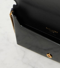 Product Details - Material: leather - Lining: leather - Made in Italy - Designer color name: Black - Closure: snap-buttoned fastening - Chain shoulder strap - Hardware color: gold - Back slot pocket - Includes: box, dust bag - Item number: P00967440 Size & Fit - Height 10cm-4" - Width 18cm-7" - Depth 2cm-1" - Chain length 100cm-39.5" - Suitable for small smartphones (e.g. iPhone 12 mini / Samsung Galaxy Z Flip 2)