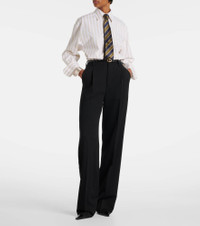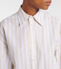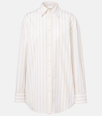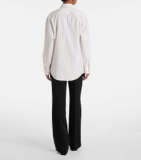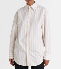 Since its conception in 1961, Saint Laurent has been coveted for its elegant Parisian aesthetic. The brand's Cassandre shirt is Italian-made from pure cotton with all-over stripes and tonal logo embroidery at the hem. Product Details - Material: 100% cotton - Care instructions: dry clean - Made in Italy - Designer color name: Craie Beige - Item color: beige - Closure: buttoned front - Item number: P01065238 Size & Fit - True to size - Dropped shoulders - Designed for a loose fit - Non-stretchy fabric - Falls below the hip - The model seen in the picture is 178cm-5'10" and wearing a size FR 34