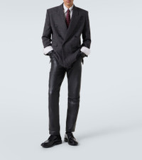 Tailoring has been synonymous with Saint Laurent since the "Le Smoking" suit was designed in the 1960s. This double-breasted blazer is crafted from Prince of Wales checked wool and cashmere. Product Details - Material: 90% wool, 10% cashmere - Care instructions: dry clean - Made in Italy - Designer color name: Gris Marron - Item color: gray - Lining: 100% silk - Contains non-textile parts of animal origin - Blazer - Peak lapel - Closure: double-breasted - Pockets: flap pockets - Vent: double - Item number: P01080745