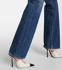 Product Details - Material: 100% cotton - Care instructions: machine wash at 30 degrees - Made in Japan - Designer color name: August Blue - Details: 100% leather - Closure: zipper fly, button fastening - Pockets: five pockets - Contains non-textile parts of animal origin - Belt loops - Item number: P00920242 Size & Fit - Fits small to size - we recommend trying one size larger - Non-stretchy fabric - Straight leg - High-rise - The model seen in the picture is 178cm-5'10" and wearing a size 27