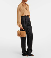 Product Details - Material: leather (suede) - Lining: leather - Made in Italy - Designer color name: Cinnamon - Item color: brown - Closure: magnetic fastening - Top handle, Detachable shoulder strap - Hardware color: antique gold - Internal details: zipped centre compartment, two internal compartments - Item number: P01065372 Size & Fit - Height 16cm-6.5" - Width 24cm-9.5" - Depth 6cm-2.5" - Length of handle 22cm-8.5" - Length shoulder strap 115cm-45.5"