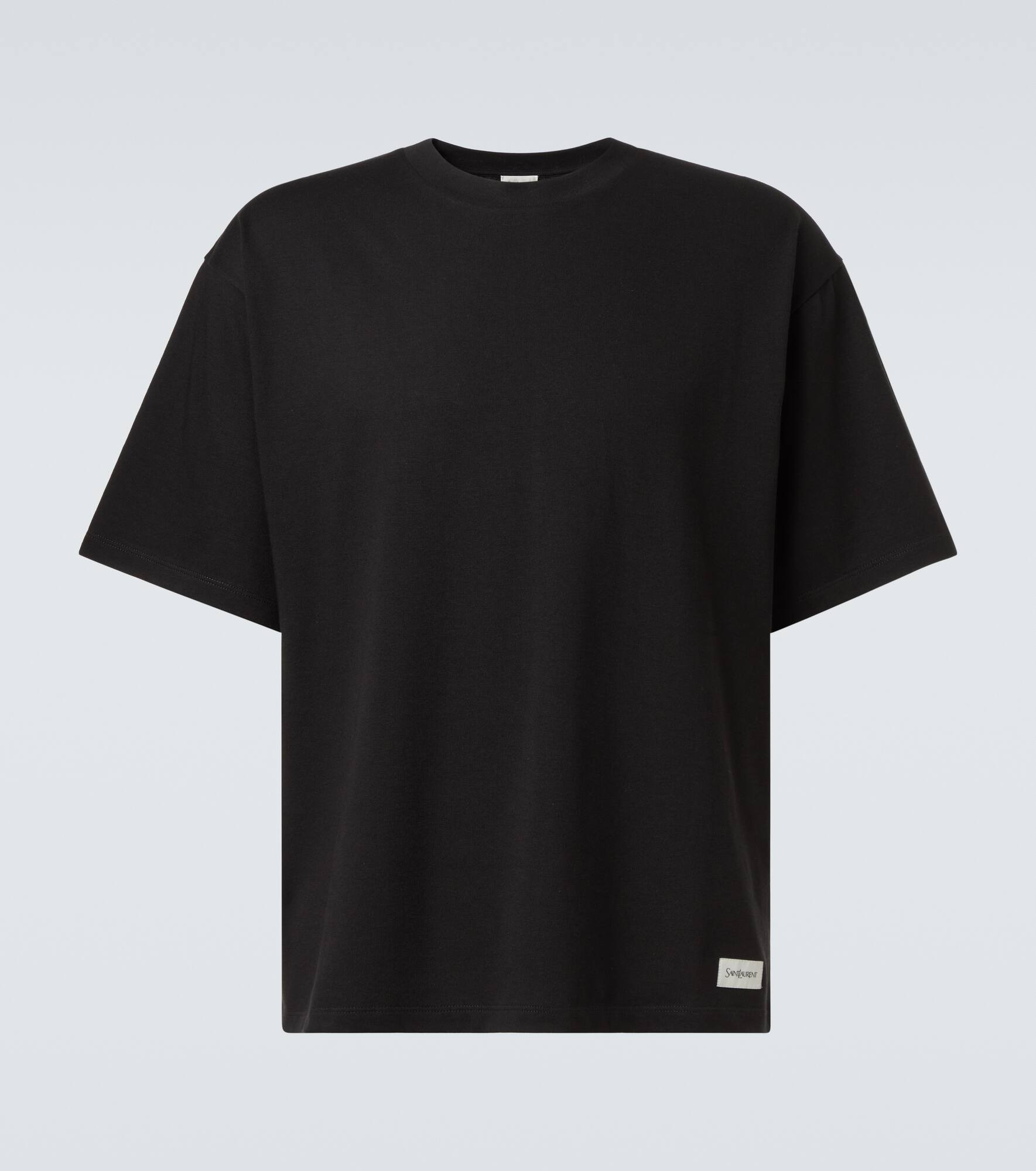 Since its conception in 1961, Saint Laurent has been coveted for its elegant Parisian aesthetic. Crafted in Italy from a cotton-blend, this T-shirt features dropped shoulders and a patch at the hem with the brand name. Product Details - Material: 50% cotton, 50% modal - Care instructions: machine wash at 30 degrees - Made in Italy - Designer color name: Noir - Item color: black - Item number: P01080742 Size & Fit - True to size - Designed for a loose fit - Slightly stretchy fabric - Falls to the hip - Height of model is 189cm-74.5" and wears a size XL