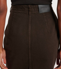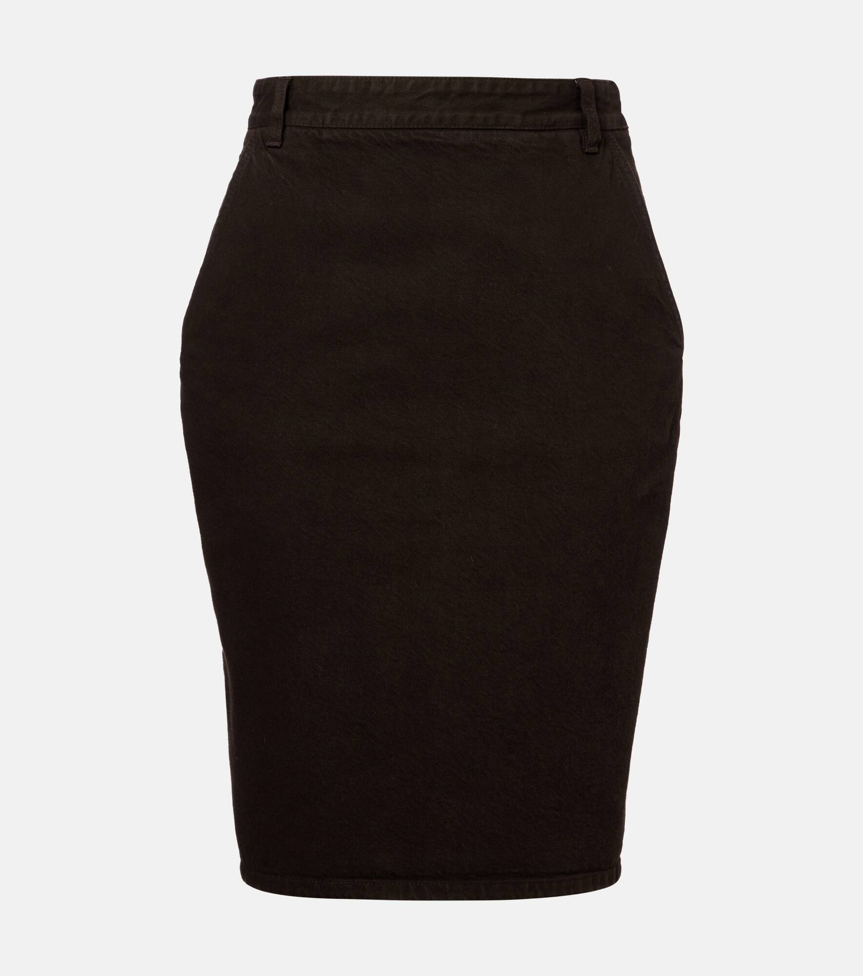 Since its conception in 1961, Saint Laurent has been coveted for its elegant Parisian aesthetic. Crafted from pure cotton, this pencil skirt is cut to a midi silhouette and features a back slit and a logo leather patch. Product Details - Material: 100% cotton - Care instructions: machine wash at 30 degrees - Made in Italy - Designer color name: Deep Brown - Item color: brown - Details: 100% calf leather - Contains non-textile parts of animal origin - Closure: zipped side - Belt loops - Pockets: slant pockets - Short vent - Item number: P01086646 Size & Fit - True to size - Non-stretchy fabric - High-waisted - The model seen in the picture is 178cm-5'10" and wearing a size 26