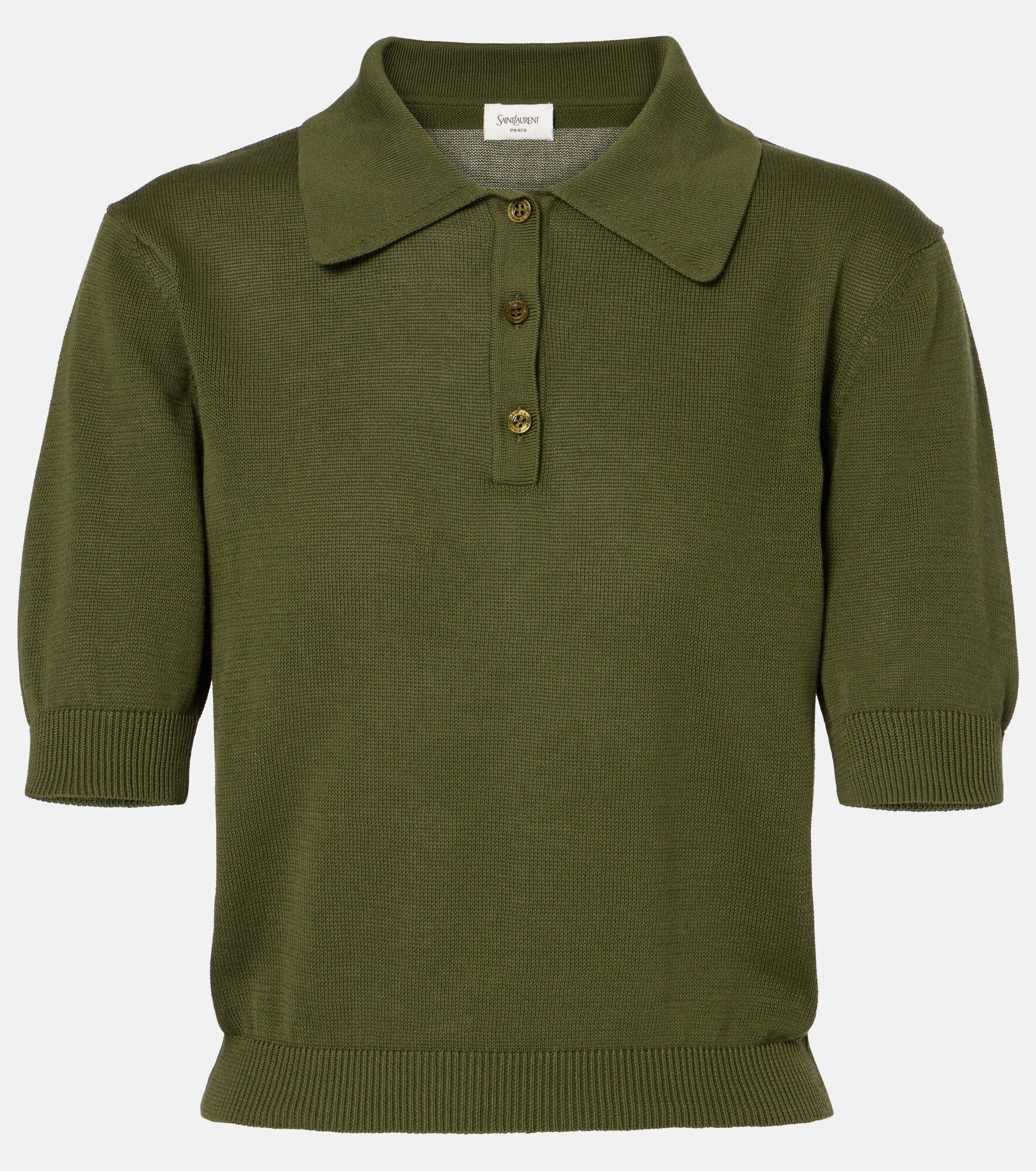 Product Details - Material: 100% cotton - Care instructions: dry clean - Made in Italy - Designer color name: Kaki - Item color: green - Contains non-textile parts of animal origin - Collar: polo collar - Closure: partially buttoned front - Cuff: ribbed - Hem: ribbed - Item number: P01032259 Size & Fit - True to size - Cinched waist - Stretchy fabric - Cropped - The model seen in the picture is 178cm-5'10" and wearing a size XS