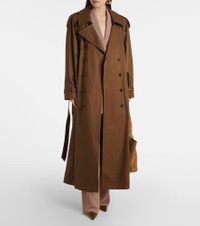 Oversized belted cotton-twill trench coat Brown
