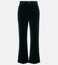 Cropped cotton-velvet slim-leg pants Green