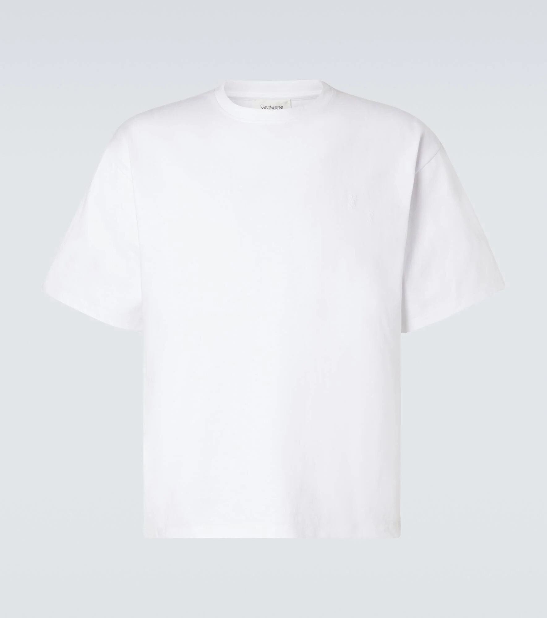 Since its conception in 1961, Saint Laurent has been coveted for its elegant Parisian aesthetic. This T-shirt is crafted from soft cotton jersey and boasts a slightly cropped silhouette. Product Details - Material: 100% cotton - Care instructions: machine wash at 30 degrees - Made in France - Color: white - Designer color name: Biancospino - Item color: white - Collar: crewneck - Item number: P01142414 Size & Fit - True to size - Straight fit - Slightly stretchy fabric - Falls to the hip - Height of model is 189cm-74.5" and wears a size L
