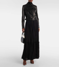 Product Details - Material: 100% leather - Care instructions: specialist clean - Made in Italy - Designer color name: Noir - Lining: 100% silk - Contains non-textile parts of animal origin - Closure: buttoned front - Pockets: buttoned pockets, internal pocket - Belt loops - Detachable belt - Cuff: one button - Comes with garment bag - Item number: P01012098 Size & Fit - True to size - Straight fit - Non-stretchy fabric - Slightly cropped - The model seen in the picture is 178cm-5'10" and wearing a size FR 36