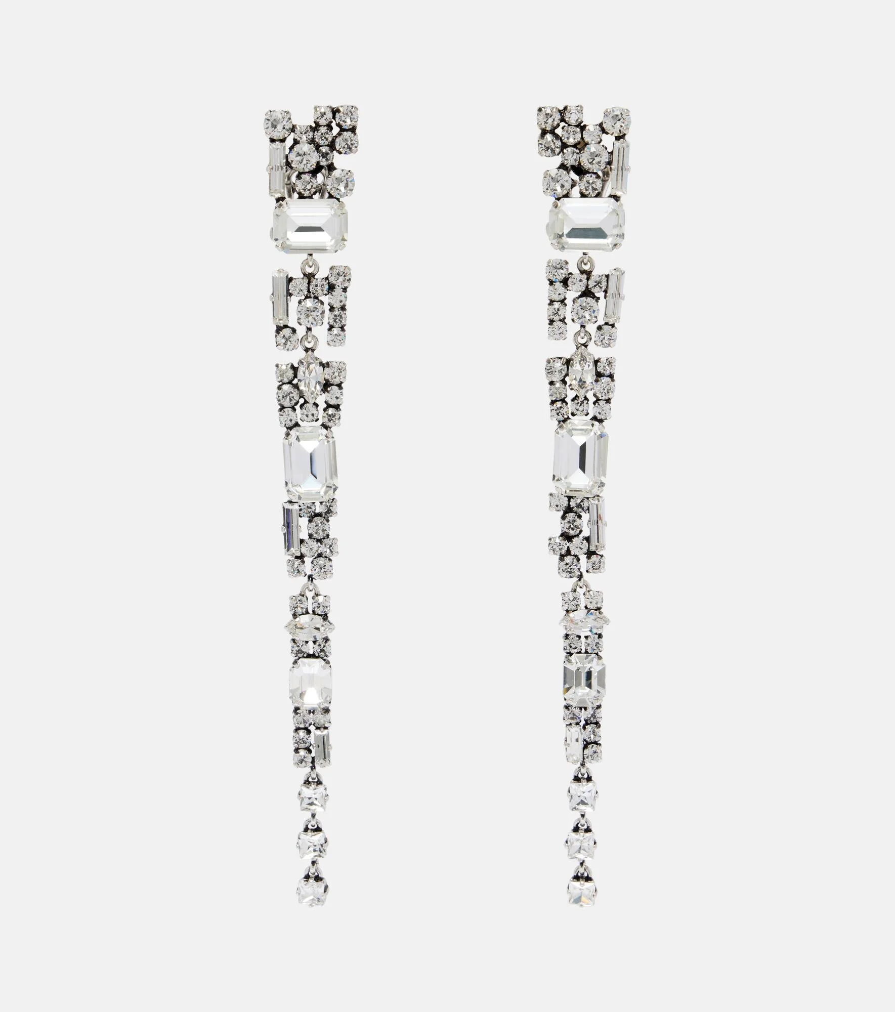 Since its conception in 1961, Saint Laurent has been coveted for its elegant Parisian aesthetic. These clip-on earrings are shaped like long icicles and embellished with sparkling crystals of various shapes and sizes. Product Details - Material: plated brass, glass - Made in France - Includes: box, dust bag - Color: silver - Designer color name: Crystal/Oxidized Silver - Closure: clip-on - Item number: P01136863 Size & Fit - Length 15,3cm-6" - Max. width 1,7cm-0.5"