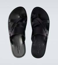 The Culver sandals from Saint Laurent have a slip-on silhouette and are set on flat soles. Made from leather, they have narrow straps that wrap around the toes. Product Details - Toe shape: round open toe - Lining: leather - Sole: leather insole and sole - Upper: calf leather - Comes with dust bags - Designer color name: Nero - Comes with a box - Made in Italy - Item number: P00645458 Size & Fit - True to size - Half sizes please take the next size up - European sizes