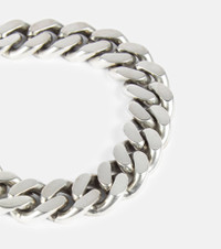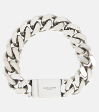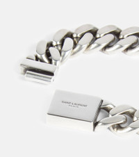 This silver-toned bracelet from Saint Laurent is an edgy addition to your accessories edit. Made in Italy from chunky chain-links, it features a logo engraved push-lock fastening. Product Details - Material: brass - Made in Italy - Item number: P00781201 Size & Fit - Length when open size L 20cm-8" - Width 1,6cm-0.5"