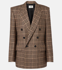 Double-breasted checked silk and cashmere-blend blazer Brown