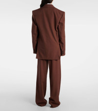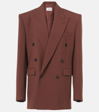 Tailoring has been synonymous with Saint Laurent since the "Le Smoking" suit was designed in the 1960s. Continuing the tradition of chic formalwear, this deep brown blazer is crafted from wool gabardine into a classic double-breasted silhouette. Product Details - Material: 100% wool - Care instructions: dry clean - Made in Italy - Designer color name: Brun Girofle - Item color: brown - Lining: 100% silk - Peak lapel - Vent: double - Cuff: four buttons - Closure: double-breasted (six buttons) - Pockets: flap pockets - Shoulder pads - Item number: P01032155 Size & Fit - True to size - Shoulder pad inserts - Dropped shoulders - Straight fit - Non-stretchy fabric - Falls below the hip - The model seen in the picture is 178cm-5'10" and wearing a size FR 34