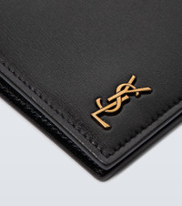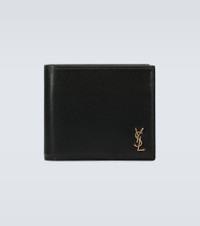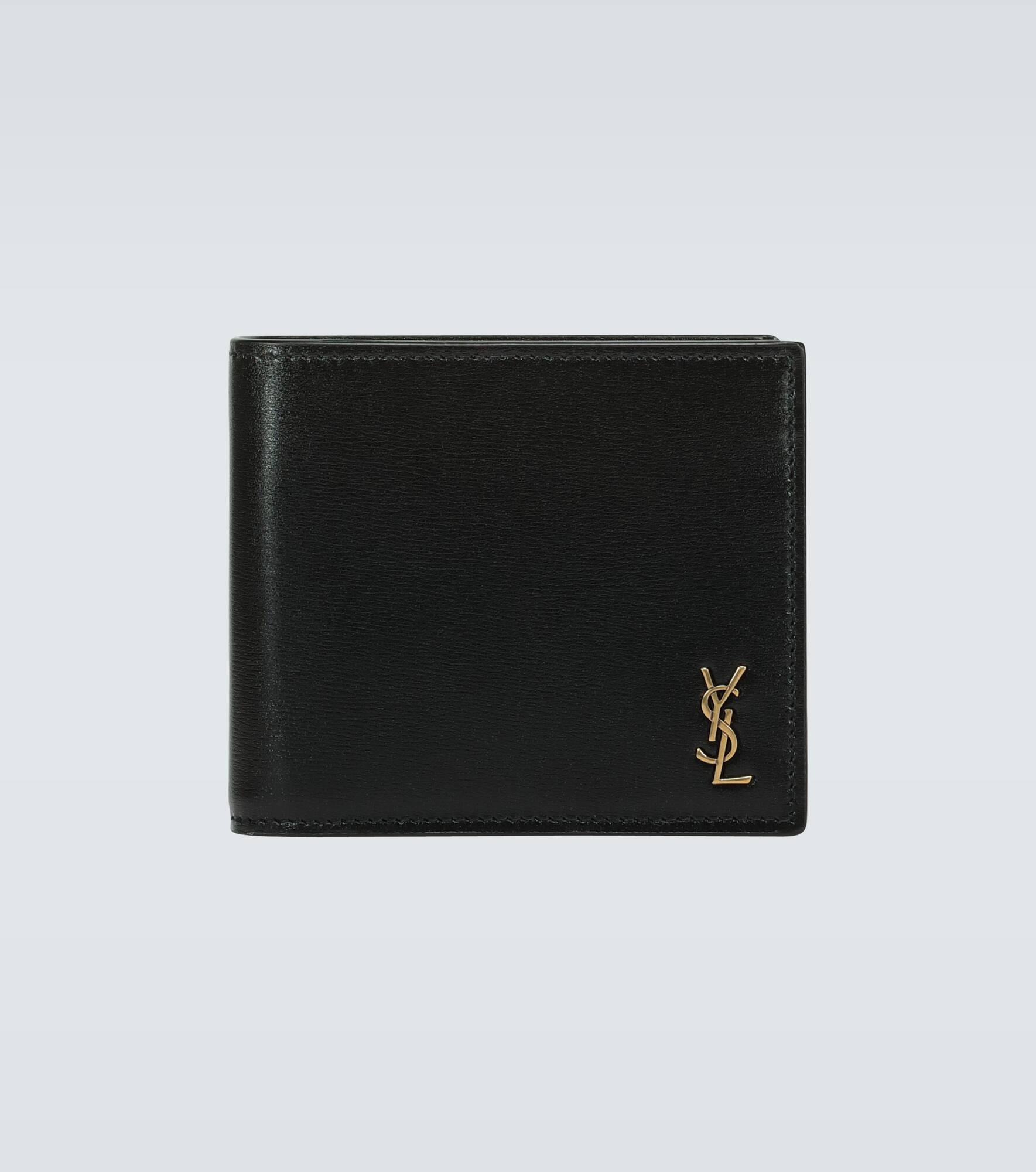 Made from a smooth black leather, this bifold wallet from Saint Laurent features multiple interior card slots and is detailed with a subtle gold-tone logo on one corner and embossed branding on the inside. Product Details - Internal details: Card slots, bill slots - Material: leather - Made in Italy - Item number: P00492132 Size & Fit - Height 9,5cm-3.5" - Width 11cm-4.5" - Depth 2cm-1"