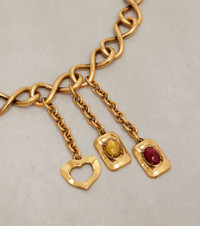Even the simplest outfit becomes artful with this Saint Laurent belt. Defined by an infinity-shaped chain, the silhouette is adorned with cabochon and heart-shaped pendants for a Baroque, romantic touch. Product Details - Material: 90% brass, 10% resin - Care instructions: do not wash - Made in Italy - Designer color name: Light Bronze - Item color: gold - Closure: toggle fastening - Includes: dust bag - Item number: P01071424 Size & Fit - Width 2cm-1" - Pendant length 8,5/10cm-3.5/4" - Pendant width 2/2,8cm-1/1"
