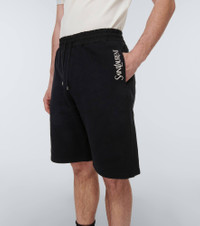 Update your collection of comfortable classics with these cotton jersey shorts by Saint Laurent. Appearing in a relaxed, track-inspired silhouette, this drawstring style is embroidered with logo detailing on the side pocket. Product Details - Made in Italy - Pockets: side slit pockets - Material: 100% cotton - Designer color name: Noir/Naturel - Pocket lining: 100% cotton - Care instructions: hand wash - Embroidery: 100% polyester - Item number: P00775867 Size & Fit - True to size - Elasticated waist - Adjustable at the waist - Mid-weight material - Wide-leg - The model in the picture is 185cm-6'1" and wearing a size M