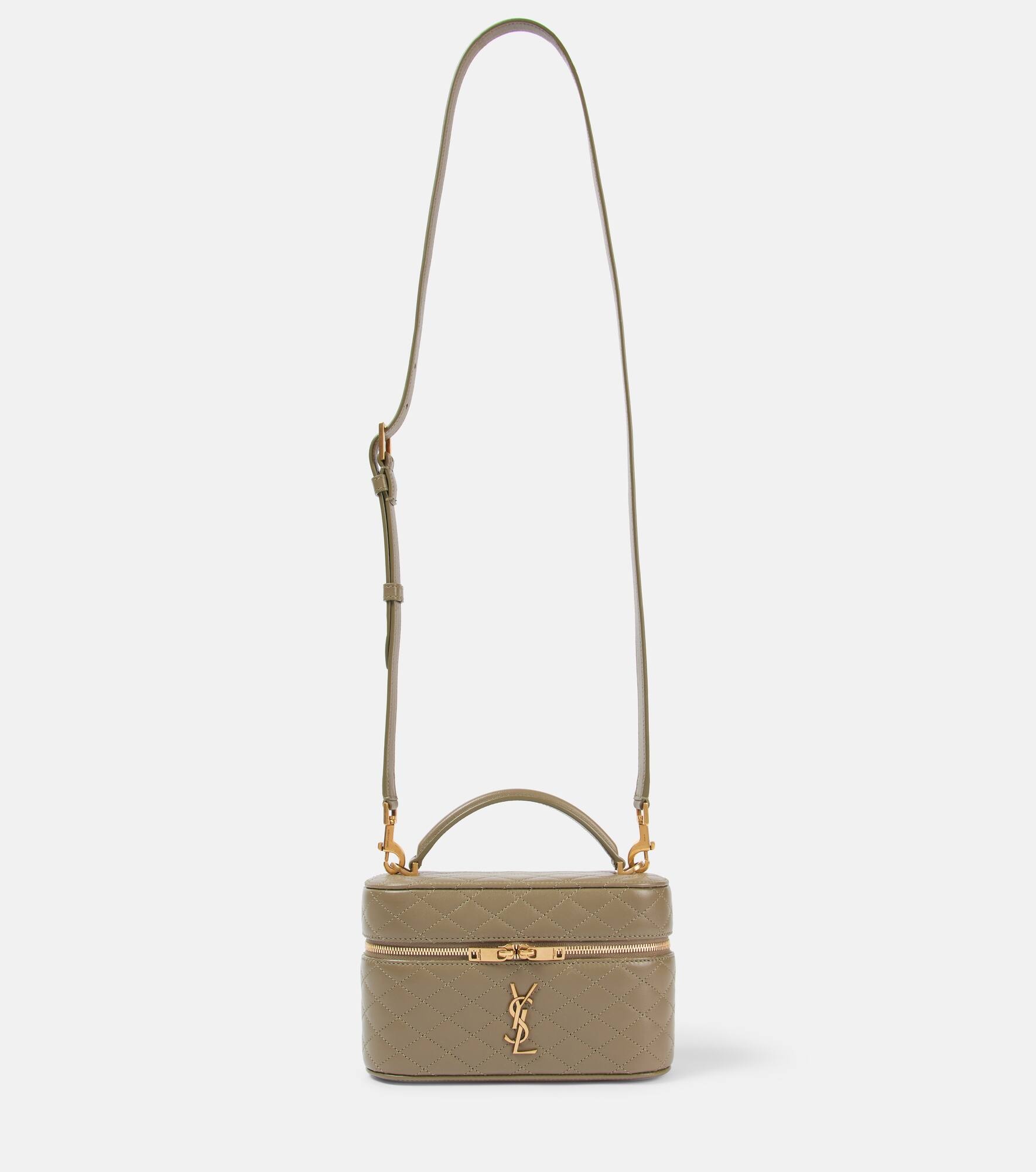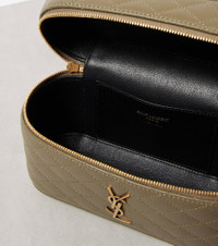 Since its conception in 1961, Saint Laurent has been coveted for its elegant Parisian aesthetic. The Gaby vanity bag is crafted from quilted leather and is complete with the brand’s iconic Cassandre motif. Product Details - Material: leather - Lining: leather - Made in Italy - Designer color name: Strong Moss - Item color: green - Hardware color: gold - Closure: two-way zipped top - Top handle, Detachable, adjustable shoulder strap - Internal details: card slot - Item number: P01040434 Size & Fit - Height 11cm-4.5" - Width 19cm-7.5" - Depth 7cm-3" - Length of handle 16cm-6.5" - Min. length shoulder strap 103cm-40.5" - Max. length shoulder strap 113cm-44.5"