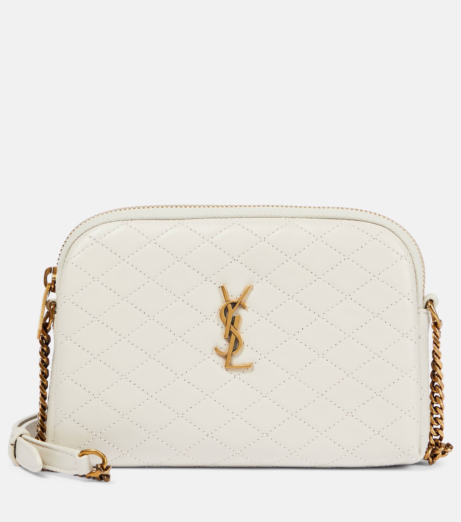 One of the most famous symbols in fashion, the YSL monogram consists of the intertwined initials of Saint Laurent's founder. Made with a quilted chevron construction, the Gaby leather shoulder bag has a zip-top compartment and gold-toned hardware. Product Details - Closure: zipped top - Made in Italy - Designer color name: Blanc Vintage - Comes with dust bag, Comes with a box - Material: leather - Leather shoulder strap - Internal details: leather lining - Item number: P00799470 Size & Fit - Height 12cm-4.5" - Width 18cm-7" - Max. depth 3cm-1" - Min. length shoulder strap 115cm-45.5" - Max. length shoulder strap 130cm-51" - Suitable for large smartphones (e.g. iPhone 12 Pro Max / Samsung Galaxy A72, S21 Ultra/ Huawei P40 Pro, Mate 40 pro)