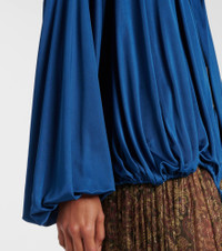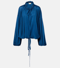 Since its conception in 1961, Saint Laurent has been coveted for its elegant Parisian aesthetic. This blouse is made in Italy and features a self-tie at the neck and waistline, creating a gathered effect. Product Details - Material: 100% viscose - Care instructions: dry clean - Made in Italy - Designer color name: Petrol - Item color: blue - Closure: self-ties - Cuff: elasticated - Item number: P01032226