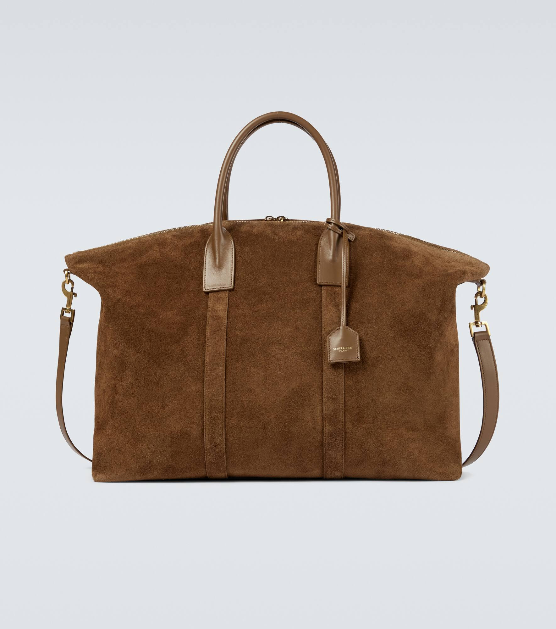 Saint Laurent crafts this large tote bag from supple suede in brown, featuring smooth brown leather trims, a zipped top and an internal zipped pocket. - material: leather - internal details: fabric lining, internal zipped pocket - colour of fastening: gold - detachable, adjustable shoulder strap, top handles - zipped top - Made in Italy - comes with dust bag - Designer colour name: Tan Brown/Tan Brown (2359)