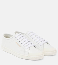 Saint Laurent translates its sleek Parisian codes into contemporary footwear. Made in Italy from leather, the Gym sneakers feature neat lace-up closures and gold-tone logos on the uppers. Product Details - Upper: leather - Lining: leather - Sole: leather insole, rubber sole - Toe shape: almond toe - Made in Italy - Includes: shoe box, dust bag, extra laces - Designer color name: White - Closure: lace-up - Item number: P01009927 Size & Fit - True to size - Best fit for narrow feet - European sizes - 2cm-1" platform (size EU 38) - 2,5cm-1" wedge heel (size EU 38)