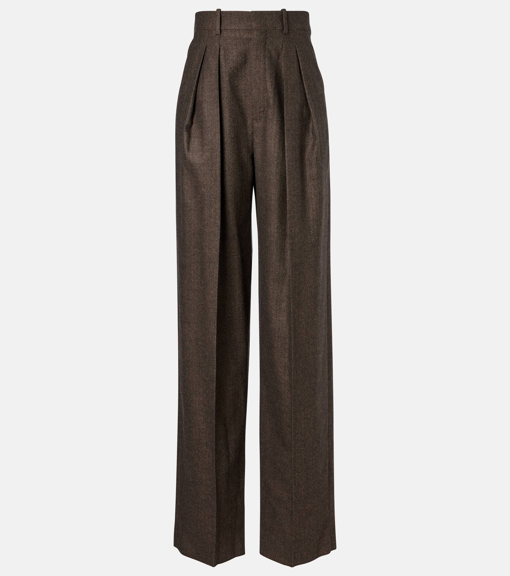 Herringbone wool wide-leg pants