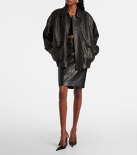 Made in Italy from supple leather, this Saint Laurent miniskirt is designed with an ultra high-rise waistline that sculpts the silhouette. The back zip closure is accented with a gold-toned Cassandre monogram that adds a refined touch. Product Details - Material: 100% lamb leather - Care instructions: specialist clean - Made in Italy - Designer color name: Black - Item color: black - Lining: 100% silk - Contains non-textile parts of animal origin - Hardware color: gold - Closure: zipped back - Pockets: slant pockets - Fully lined - Item number: P01086653 Size & Fit - Fits small to size - we recommend trying one size larger - Non-stretchy fabric - High-waisted - slit length 22,0cm-8.5" - The model seen in the picture is 178cm-5'10" and wearing a size FR 36