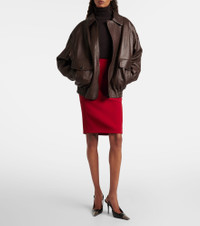 This Saint Laurent pencil skirt is designed with a midi length and a high-rise waistline that sculpts the silhouette. The back zip closure is accented with a gold-toned Cassandre monogram that adds a refined touch. Product Details - Material: 87% viscose, 12% cupro, 1% elastane - Care instructions: dry clean - Made in France - Designer color name: Rouge - Item color: red - Pocket lining: 90% silk, 10% elastane - Hardware color: gold - Closure: zipped back - Pockets: side slit pockets - Partially lined - Item number: P01110757 Size & Fit - True to size - Slightly stretchy fabric - High-waisted - The model seen in the picture is 178cm-5'10" and wearing a size FR 34