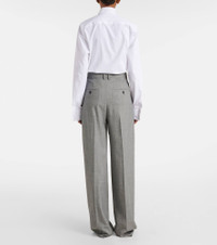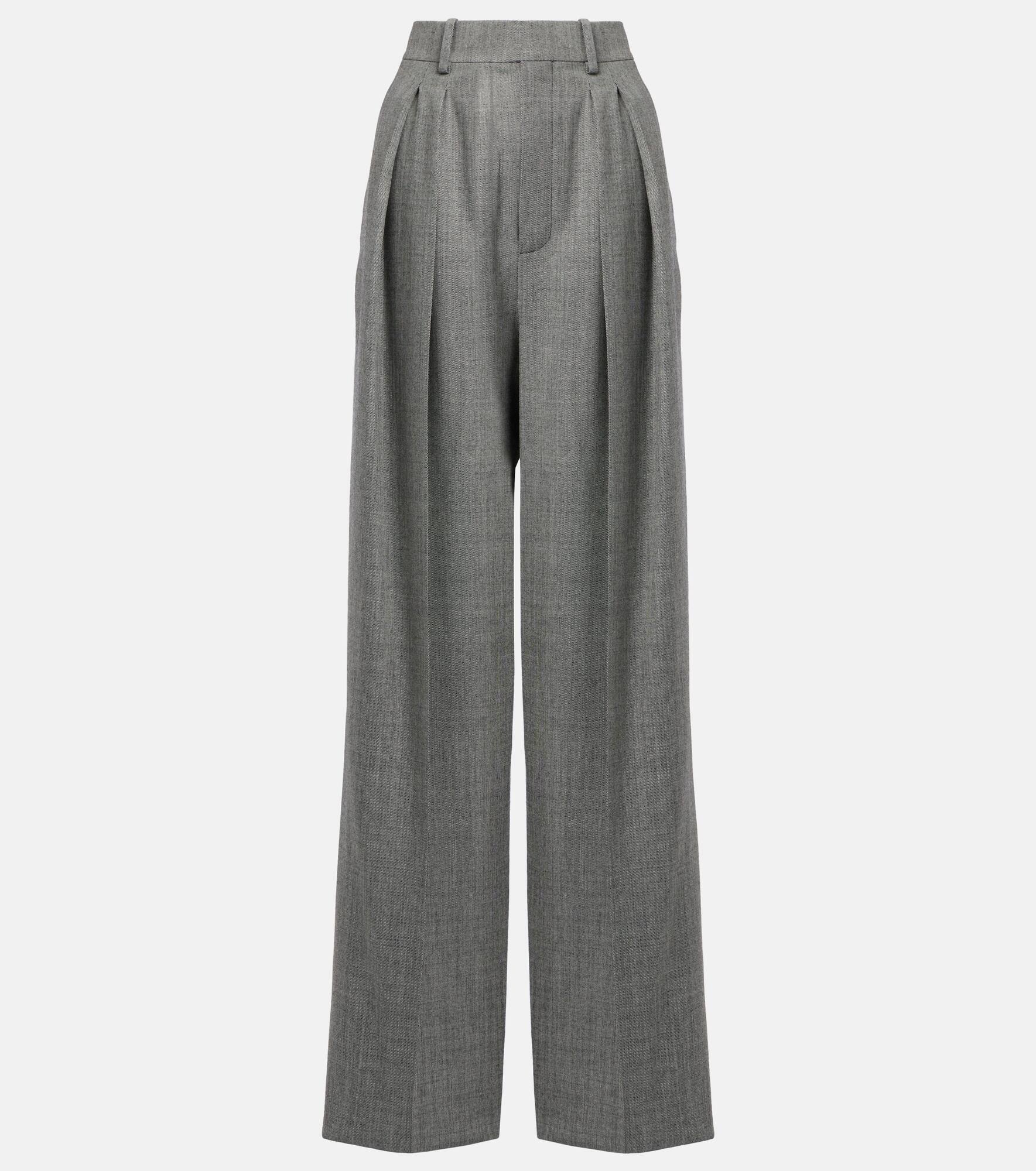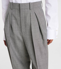 Product Details - Material: 100% wool - Care instructions: dry clean - Made in Italy - Designer color name: Naturel/ Noir - Item color: gray - Contains non-textile parts of animal origin - Pocket lining: 97% cotton, 3% elastane - Closure: zip, hook, and button fastening - Pockets: side slit pockets, back pockets - Belt loops - Item number: P01032186 Size & Fit - Fits small to size - we recommend trying one size larger - Non-stretchy fabric - Wide-leg - High-waisted - Unhemmed for tailoring - The model seen in the picture is 178cm-5'10" and wearing a size FR 36