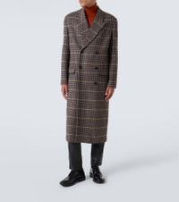 Double-Breasted Houndstooth Wool Coat Black
