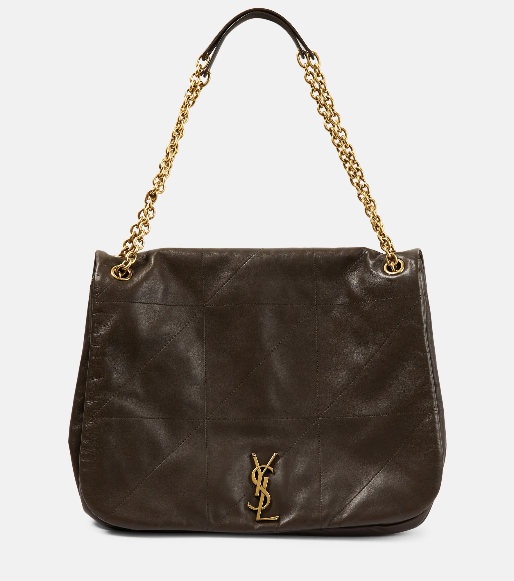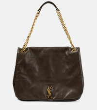 Named after Jamie Bochert, the Jamie 4.3 shoulder bag from Saint Laurent is a new interpretation of a beloved style. Made from supple brown lambskin leather, the oversized design stays 1 to house codes with the Le Maillon chain, YSL monogram, and a patchwork construction inspired by the Carré River Gauche. Product Details - Material: lamb leather - Lining: leather - Made in Italy - Designer color name: Light Musk - Chain shoulder strap - Internal details: internal zipped pocket, bill slot - Includes: dust bag - Item number: P00832911 Size & Fit - Height 34cm-13.5" - Width 39cm-15.5" - Depth 9cm-3.5" - Chain length 96cm-38"