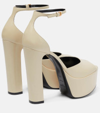 Make an elevated statement with Saint Laurent's glamorous platform sandals. They are made in Italy from leather and feature thin adjustable ankle straps and 145mm block heels. Product Details - Lining: leather - Upper: lamb leather - Sole: leather insole and sole - Toe shape: almond open toe - Comes with dust bags - Designer color name: Pearl - Comes with a box - Closure: buckle-fastening ankle strap - Made in Italy - Item number: P00698917 Size & Fit - True to size - European sizes - 14,5cm-5.5" heel (size EU 38) - 5cm-2" platform (size EU 38)