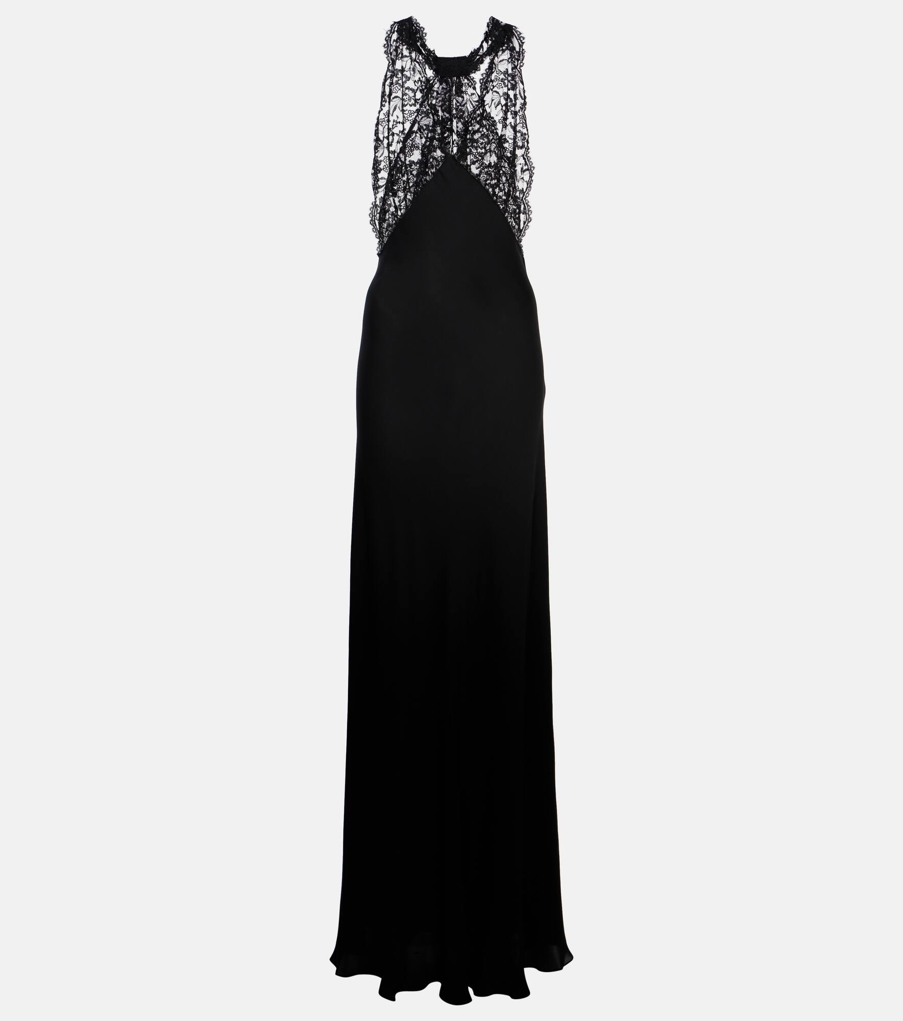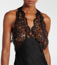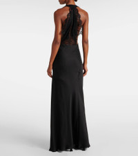 Lace-trimmed silk-charmeuse halterneck gown Black