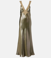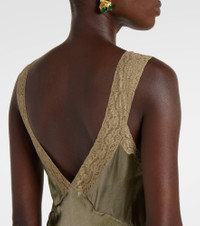 Lace-trimmed gathered silk-charmeuse maxi dress Gold