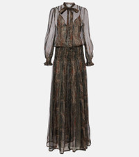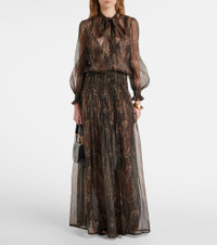Smocked metallic paisley-print silk-blend chiffon maxi dress Multi