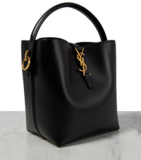 One of the most famous symbols in fashion, the YSL monogram consists of the intertwined initials of Saint Laurent's founder. It stands out in gleaming gold-tone on this Le 37 Small bucket bag, which is made from smooth leather and finished with a top handle and detachable shoulder strap. Product Details - Top handle, Detachable, adjustable shoulder strap - Internal details: card slot, suede lining - Designer color name: Noir - Protective feet - Made in Italy - Comes with dust bag - Closure: slot-tab fastening - Material: leather - Item number: P00830349 Size & Fit - Height 19cm-7.5" - Width 16cm-6.5" - Depth 13cm-5" - Length of handle 26cm-10" - Min. length shoulder strap 94cm-37" - Max. length shoulder strap 104cm-41"