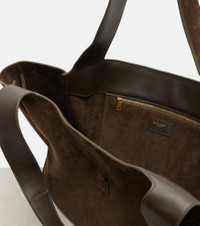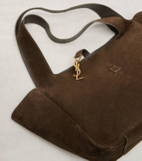 Carry the day with the Le 5 a 7 Bea tote bag. Lightweight and spacious, the functional classic is crafted from supple suede in an open-top design with an iconic Cassandre hardware detail. Product Details - Material: calf leather (suede) - Lining: suede - Made in Italy - Designer color name: Blue Musk - Item color: green - Internal details: internal zipped pocket - Top handles - Includes: dust bag - Item number: P01082388 Size & Fit - Height 29cm-11.5" - Width 39cm-15.5" - Depth 14cm-5.5" - Length of handles 60cm-23.5"