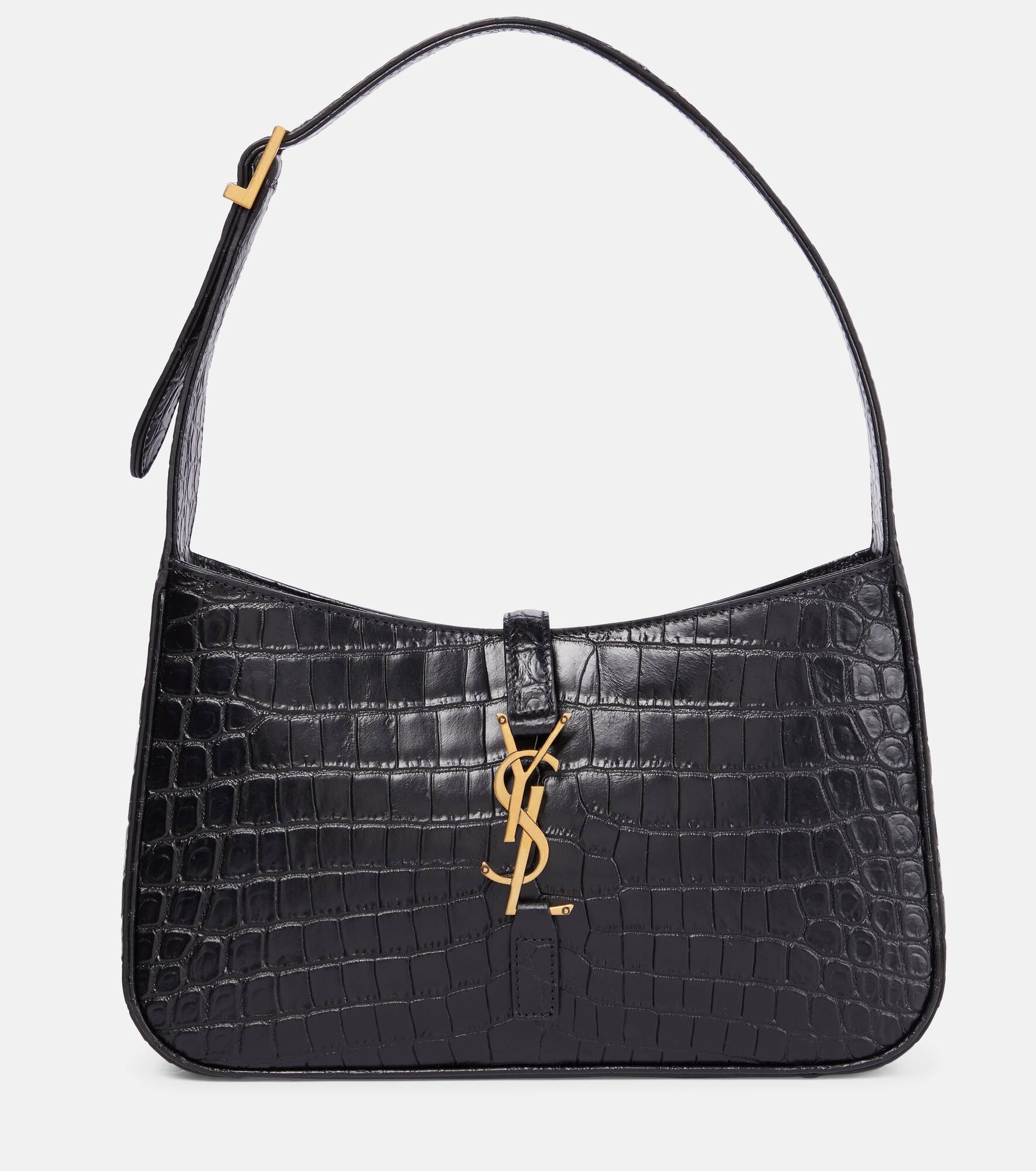 Saint Laurent creates the aptly named Le 5 à 7 bag for all your desk-to-dinner – and beyond – social activities. A shoulder style made from croc-embossed black leather, it's the perfect-sized piece for the essentials. Thanks to the suede-lined interior and zipped pocket, feel free to leave your continental wallet at home and carry your cards securely. Product Details - Color of fastening: gold - Internal details: internal zipped pocket, suede lining - Designer color name: Nero - Comes with dust bag - Made in Italy - Material: calf leather - Closure: slot-tab fastening - Adjustable shoulder strap - Item number: P00555133 Size & Fit - Min. height 14cm-5.5" - Max. height 15,5cm-6" - Min. width 22cm-8.5" - Max. width 24cm-9.5" - Max. depth 6cm-2.5" - Min. length of handles 44cm-17.5" - Max. length of handles 49cm-19.5"