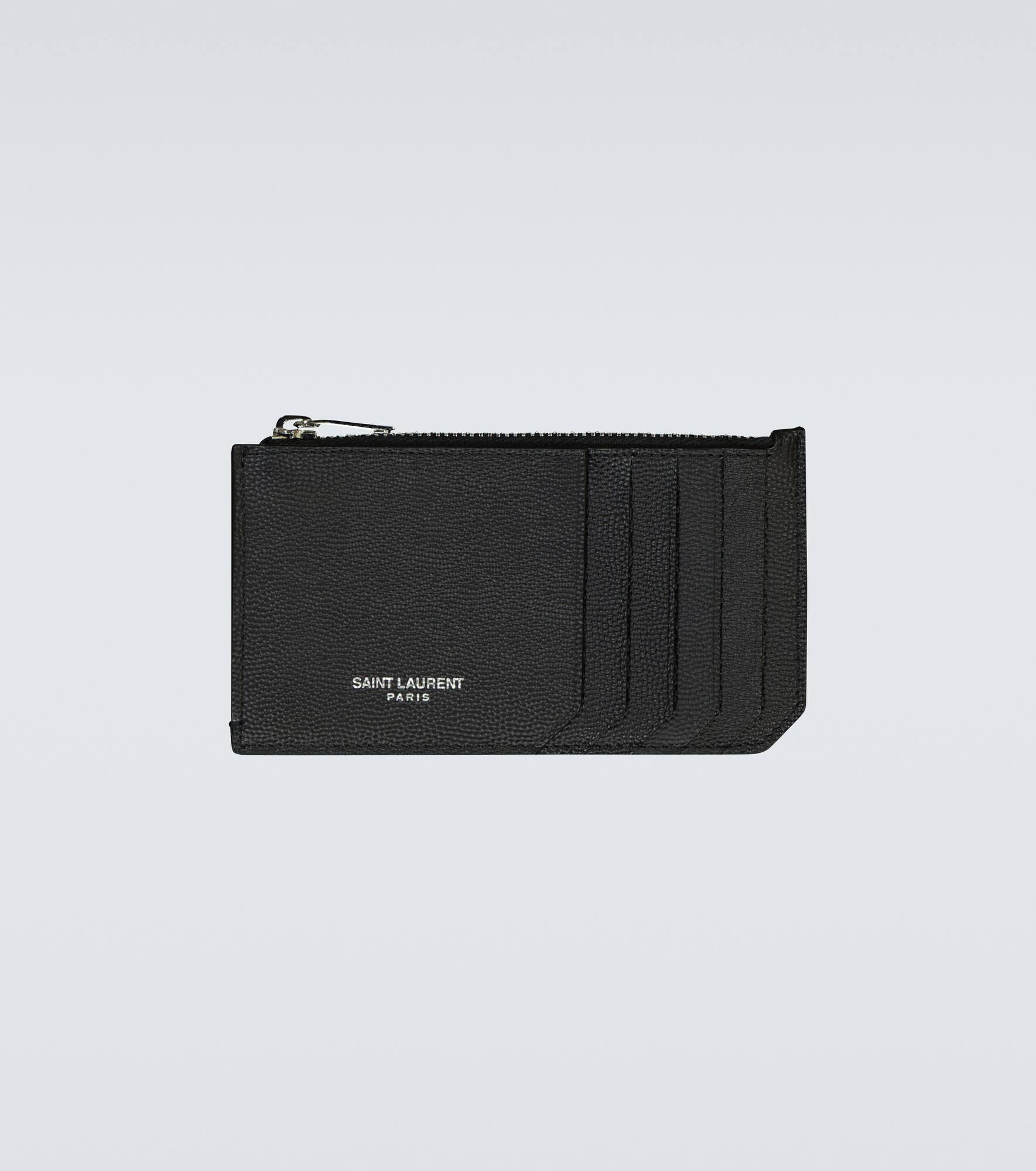 This leather ID card case with credit card slots is embossed with a Saint Laurent Paris signature. Product Details - Internal details: Card slots, internal zipped pocket - Material: calf leather - Comes with dust bag - Made in Italy - Item number: P00441549 Size & Fit - Height 7cm-3" - Width 13cm-5"