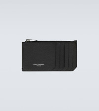 SAINT LAURENT PARIS FRAGMENTS ZIPPED CARD CASE IN GRAIN DE POUDRE LEATHER