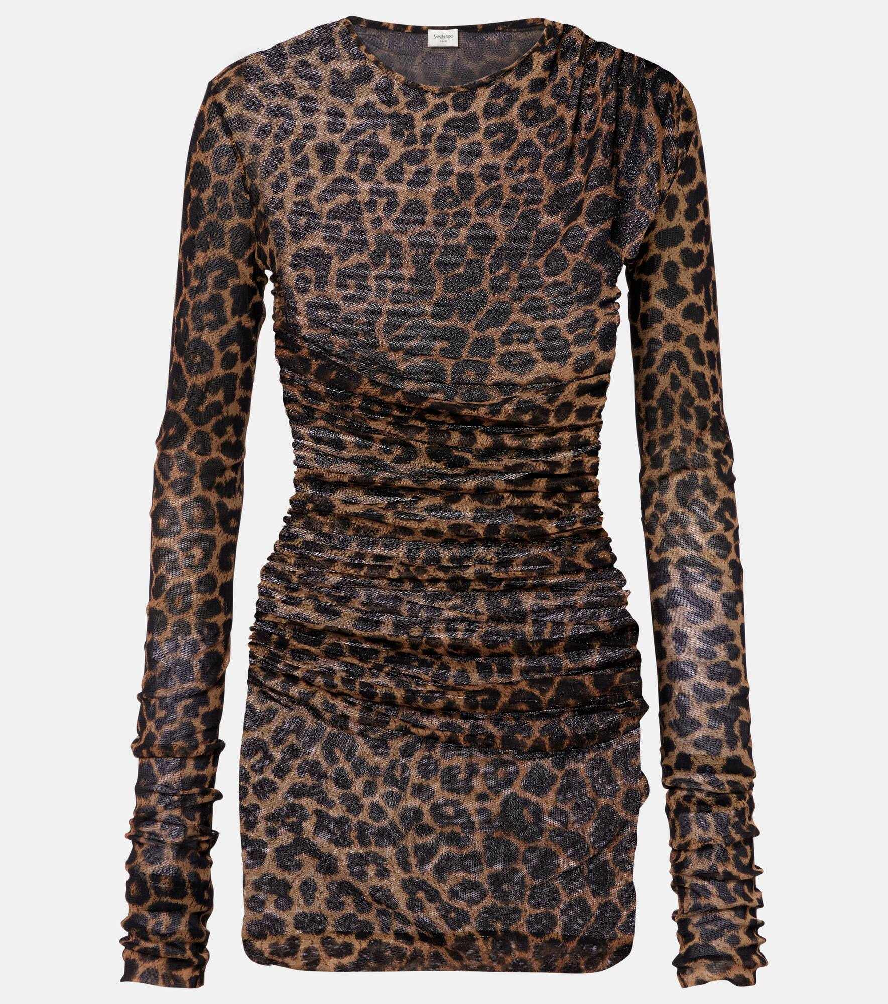 Since its conception in 1961, Saint Laurent has been coveted for its elegant Parisian aesthetic. This minidress is crafted from leopard-printed tulle and is complete with ruched detailing. Product Details - Material: 100% polyamide - Care instructions: dry clean - Made in France - Designer color name: Leopard - Item color: brown - Lining: 74% polyamide, 26% elastane - Item number: P01086660 Size & Fit - True to size - Petite sizing - Fitted - Stretchy fabric - The model seen in the picture is 178cm-5'10" and wearing a size XS