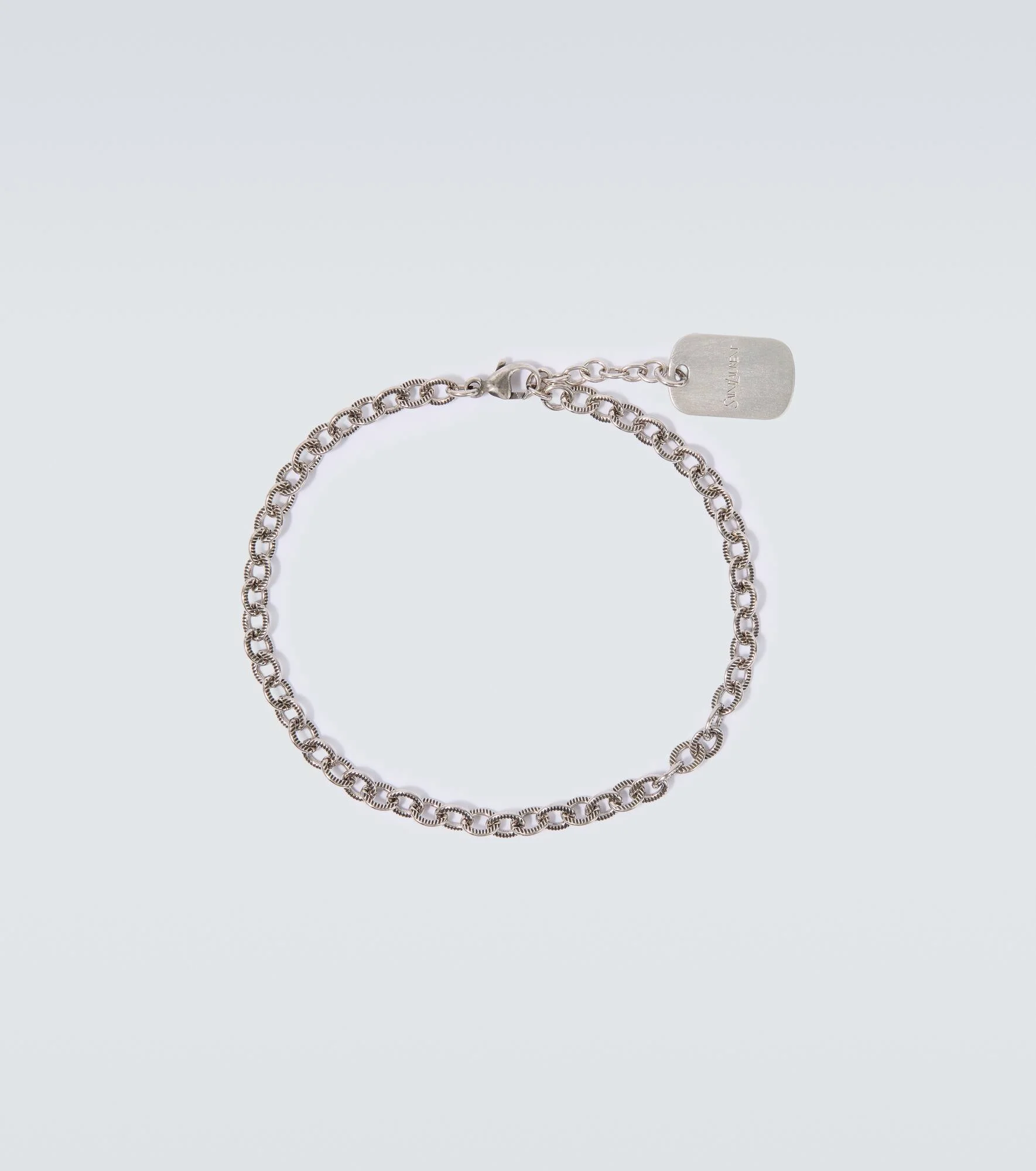 Since its conception in 1961, Saint Laurent has been coveted for its elegant Parisian aesthetic. Made from silver-toned brass, this chain bracelet is finished with a logo-engraved tag. Product Details - Material: brass - Made in Costa Rica - Includes: box, dust bag - Color: silver - Item number: P01142332 Size & Fit - Width 0,3cm-0" - Pendant length 1,5cm-0.5" - Pendant width 1cm-0.5" - Length of size M = 17/19cm-6.5/7.5" - Length of size L = 18/21cm-7/8.5"
