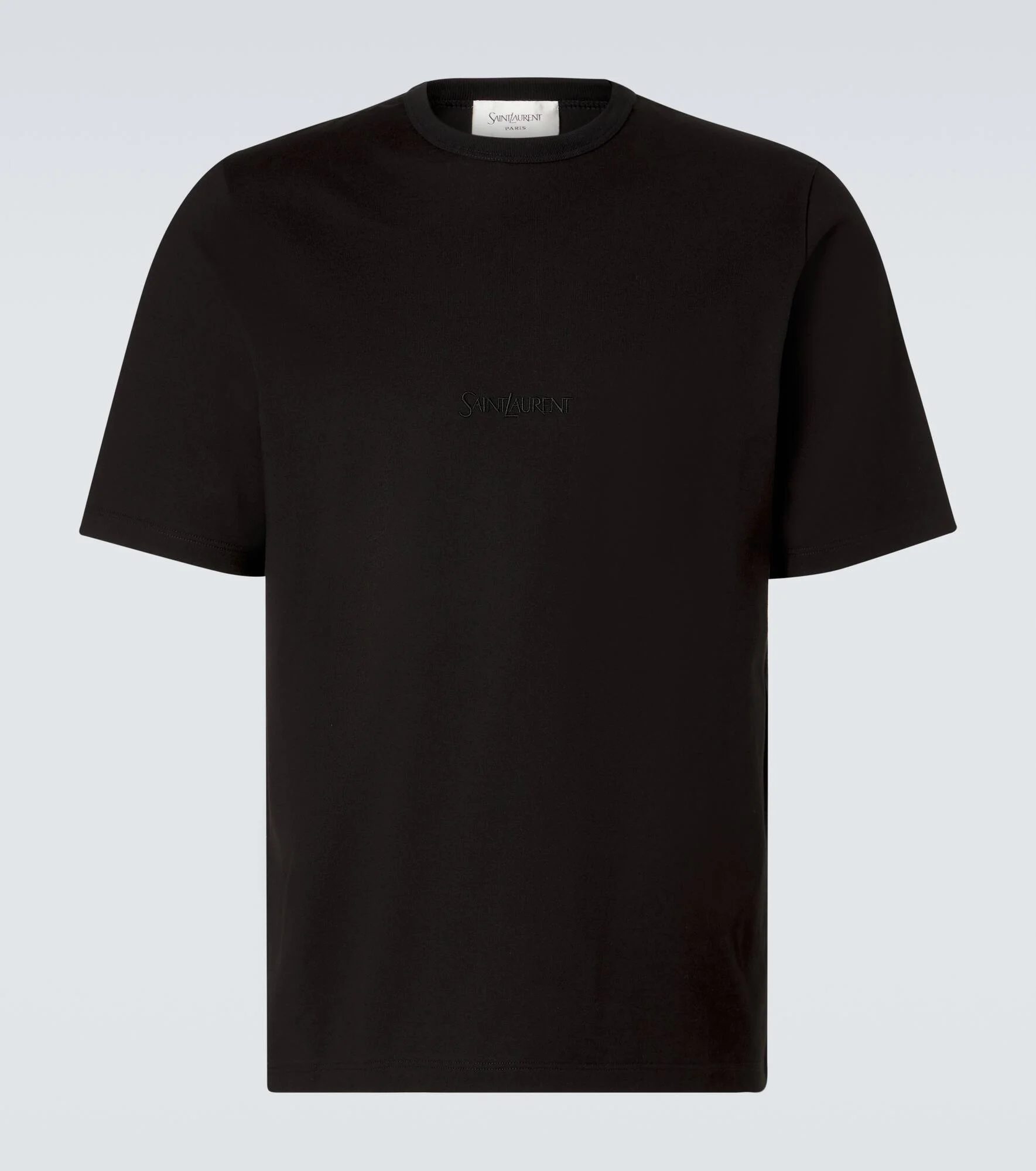 Since its conception in 1961, Saint Laurent has been coveted for its elegant Parisian aesthetic. Crafted from soft cotton jersey, this T-shirt boasts the house's signature logo lettering at the chest. Product Details - Material: 100% cotton - Care instructions: machine wash at 30 degrees - Made in Italy - Color: black - Designer color name: Noir - Item color: black - Embroidery: 100% polyester - Collar: crewneck - Item number: P01142317 Size & Fit - True to size - Slim fit - Slightly stretchy fabric - Falls to the hip - Height of model is 189cm-74.5" and wears a size L