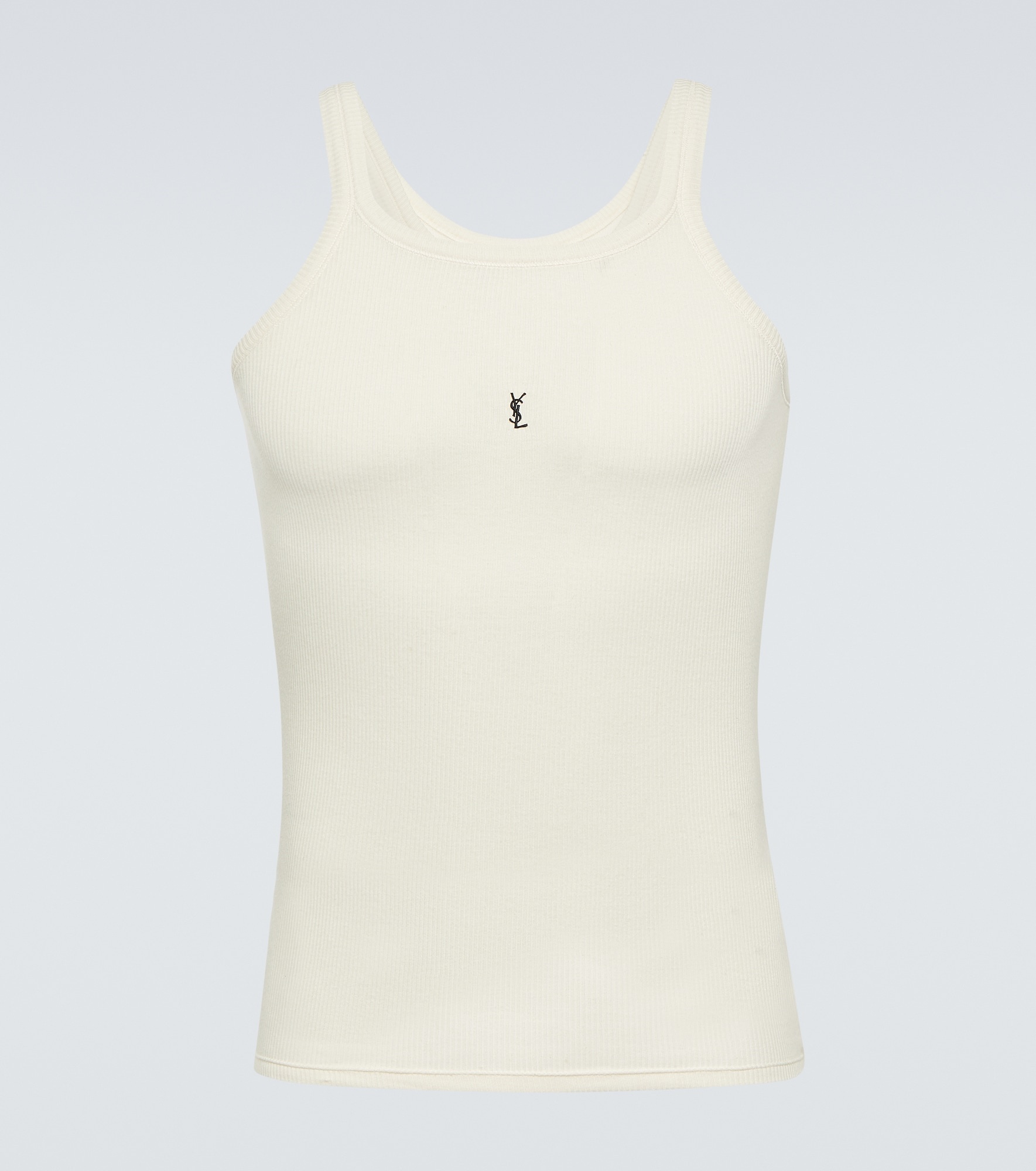 Elevate your essentials edit with this tank top from Saint Laurent. The classic style is made from cotton jersey to a fitted silhouette and is complete with a small logo detail at the chest. Product Details - Care instructions: hand wash - Made in Italy - Material: 100% cotton - Designer color name: Naturel/Noir - Item number: P00829013 Size & Fit - Fits small to size - we recommend trying one size larger - Fitted - Mid-weight material - Falls to the hip - The model in the picture is 185cm-6'1" and wearing a size L
