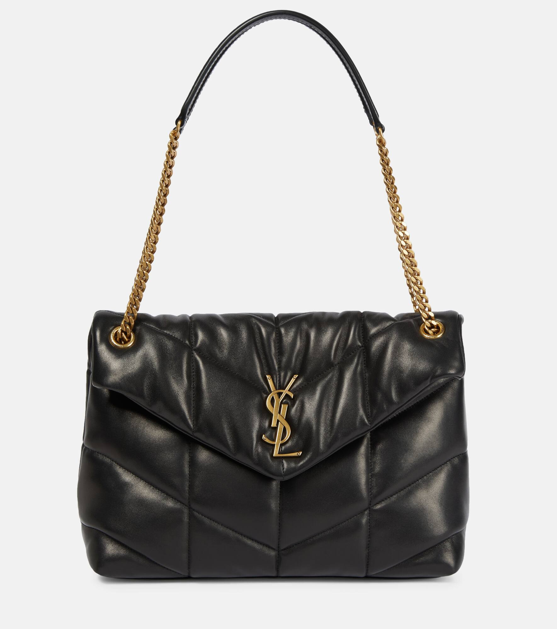 The Loulou Medium shoulder bag from Saint Laurent is an update on a revered cult classic inspired by puffer jackets. Made from soft-quilted leather, it’s accented with gold-toned hardware and the label's iconic YSL monogram. - material: calf leather - internal details: fabric lining, internal zipped pocket - colour of chain strap: antique gold - colour of fastening: gold - chain shoulder strap, top handles - magnetic-tab fastening - Made in Italy - comes with dust bag - Designer colour name: Nero