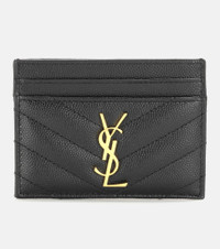 Crafted from midnight black pebbled calfskin, this Monogram card holder from Saint Laurent will playfully stand the test of time. The label's iconic YSL logo sits proudly at the front in a gold-tone effect for instant recognition. Carry yours in your evening clutch. Product Details - Internal details: Card slots, fabric lining - Material: calf leather - Made in Italy - Item number: P00263665 Size & Fit - Height 7,5cm-3" - Width 10,5cm-4"