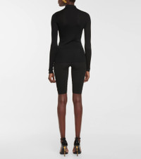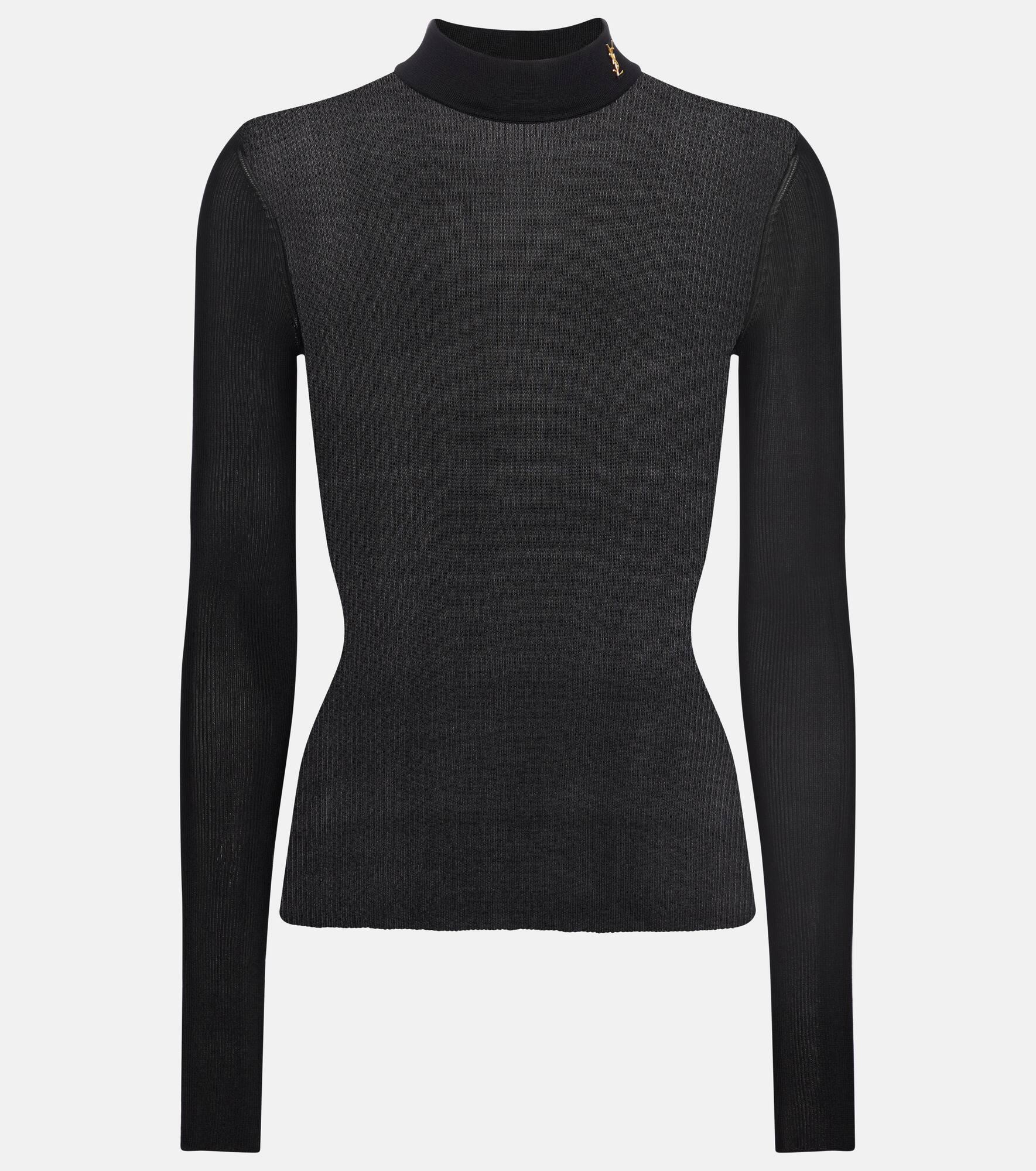 Saint Laurent is a byword for sensuality, and this mockneck top more than meets with this attribution. In a fine silk knit made in Italy, the long-sleeved design has a ribbed, body-forming silhouette that's ever so slightly sheer in finish. The house's iconic YSL monogram rests on the turtleneck in golden metal. Product Details - Made in Italy - Material: 100% silk - Care instructions: dry clean - Designer color name: Black - Item number: P00571440 Size & Fit - True to size - Semi-sheer - Fitted - Lightweight material - Stretchy fabric - Falls to the hip - The model seen in the picture is 178cm-5'10" and wearing a size XS